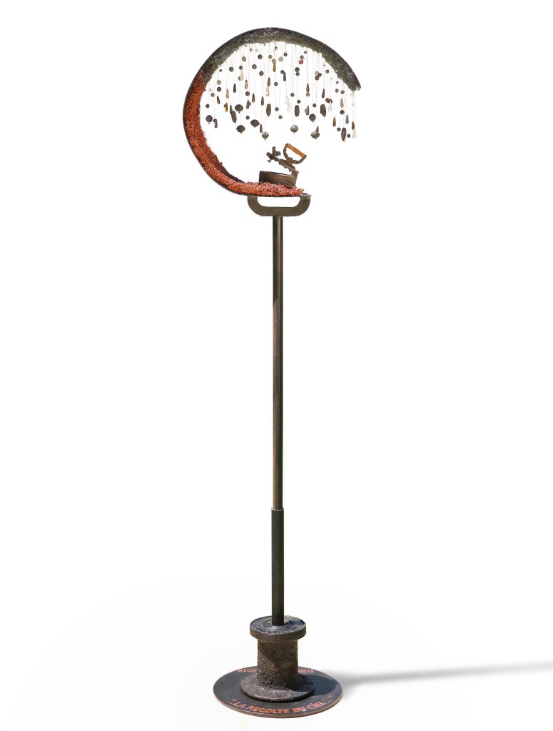 → Prix sur demande 45 x 35 x 180 cm, acier, perles, pierres de lave Tous les êtres vivants peuvent se développer grâce à leur environnement. A des fins économiques, l’être …